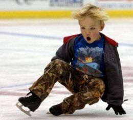 Once upon a time a young boy was trying to learn how to ice skate. He had fallen so many times that his face was cut, with the blood, sweat and tears mixing together on his cheeks.